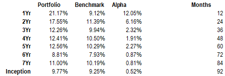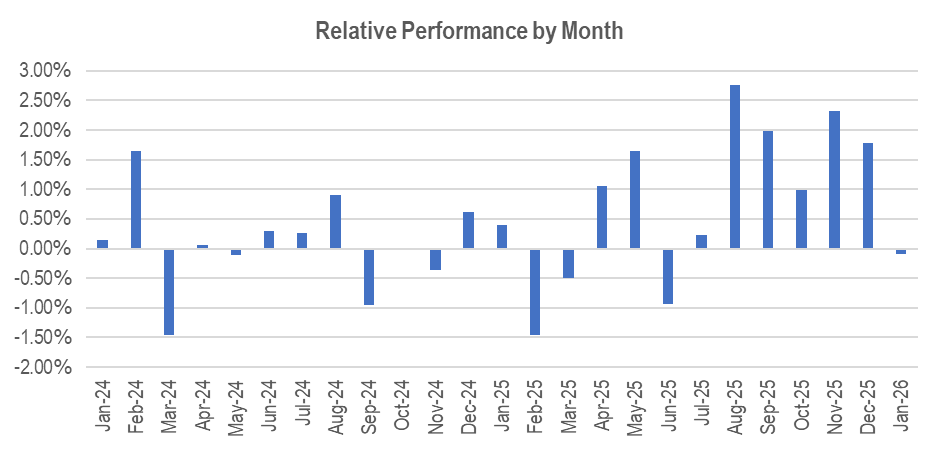 Note that portfolios will fluctuate and average performance was less positive over prior periods. Nonetheless, the relative performance is positive since inception.