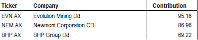In a nutshell, it was a positive month for resources, notwithstanding a very late correction in gold, which is included in the above.