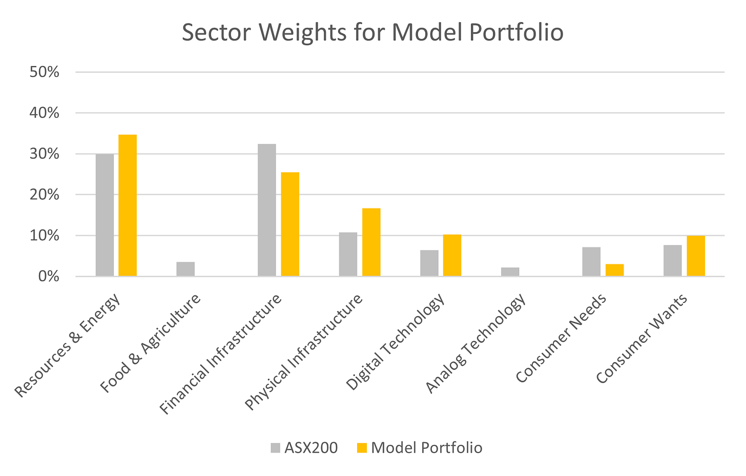 The sector positioning is overweight resources, physical infrastructure, consumer wants and digital technology.