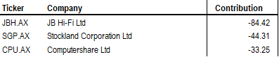The top three negative contributors to performance in Jan-2026 were: