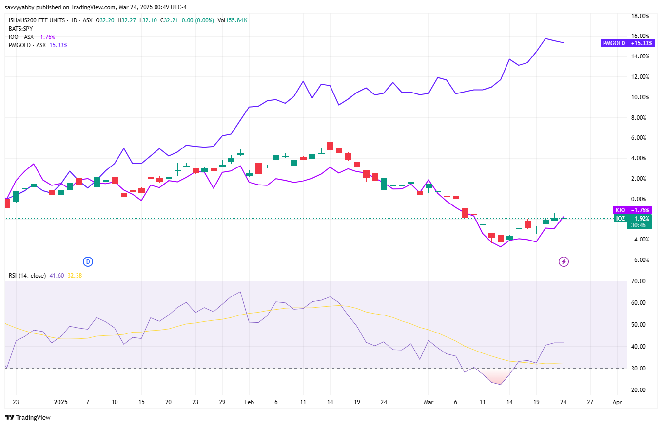 You can tell that the KISS portfolio of IOO + IOZ is missing something from the relative performance since we recommended that on 20-Dec-24.