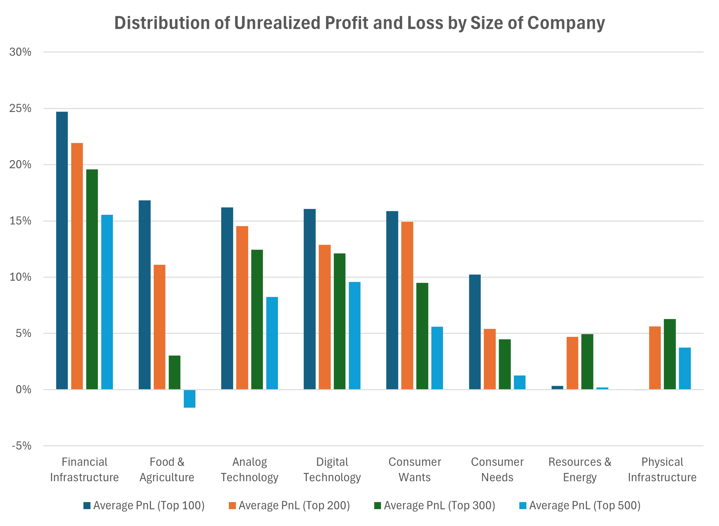 The market condition I wrote about in late Nov-24 was characterized by high positive sentiment across all major US sectors. Recall that the way we measure this is based on unrealized profit and loss from investors who currently own the stocks.