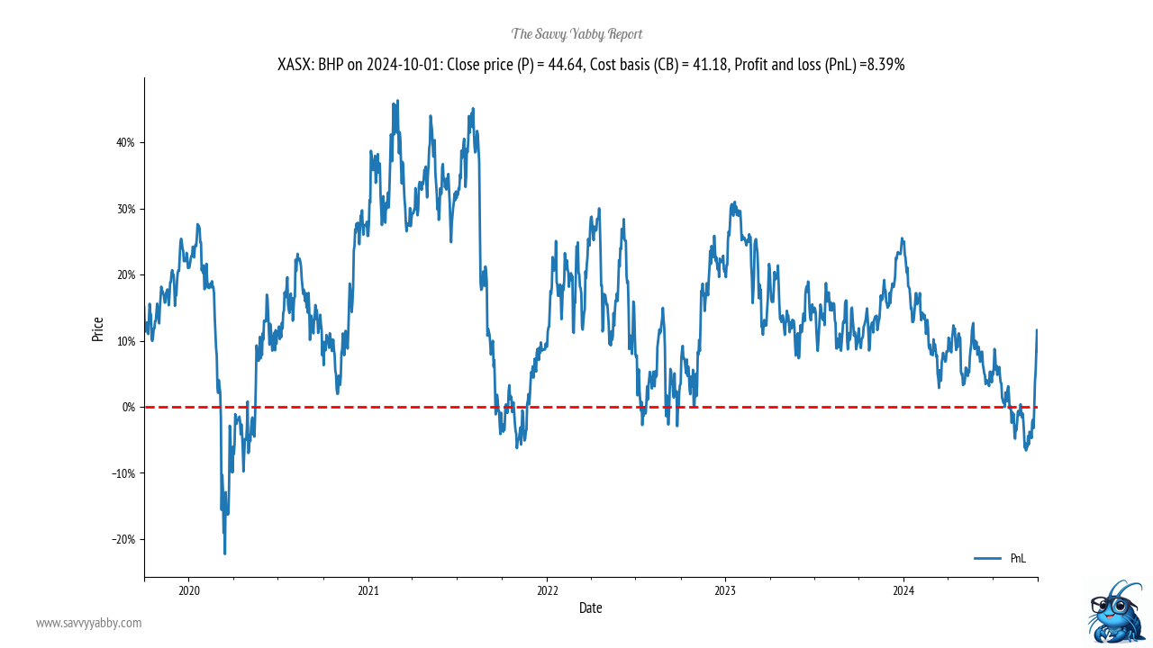 Notice how the price of BHP navigated those times close to break even. It went into a deep but short bear market in the COVIS period, and shorter ones thereafter.