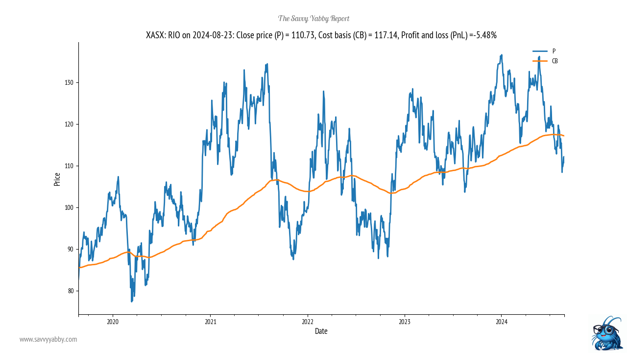 Rio Tinto XASX: RIO reported back on 31-Jul-24 and is also soft.