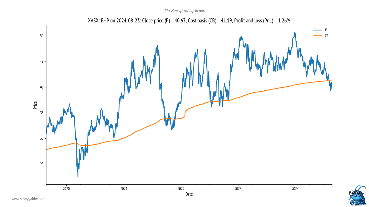 BHP Group XASX: BHP is more diversified, but still soft. They will report on Monday 26th August. Clearly, the iron ore outlook will be key for the market.