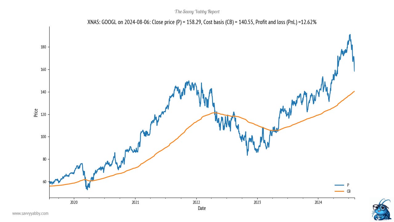 I am cautious of adding to stocks in a position like Alphabet. There may be another leg down, which is only around 12% to cost-basis, so news flow is key.