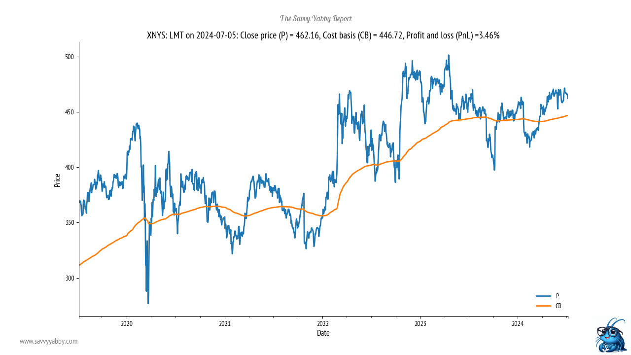Lockheed Martin XNYS: LMT is doing a little less well because they produce platforms such as the F-35, which are not being used up (destroyed) very much at this time.