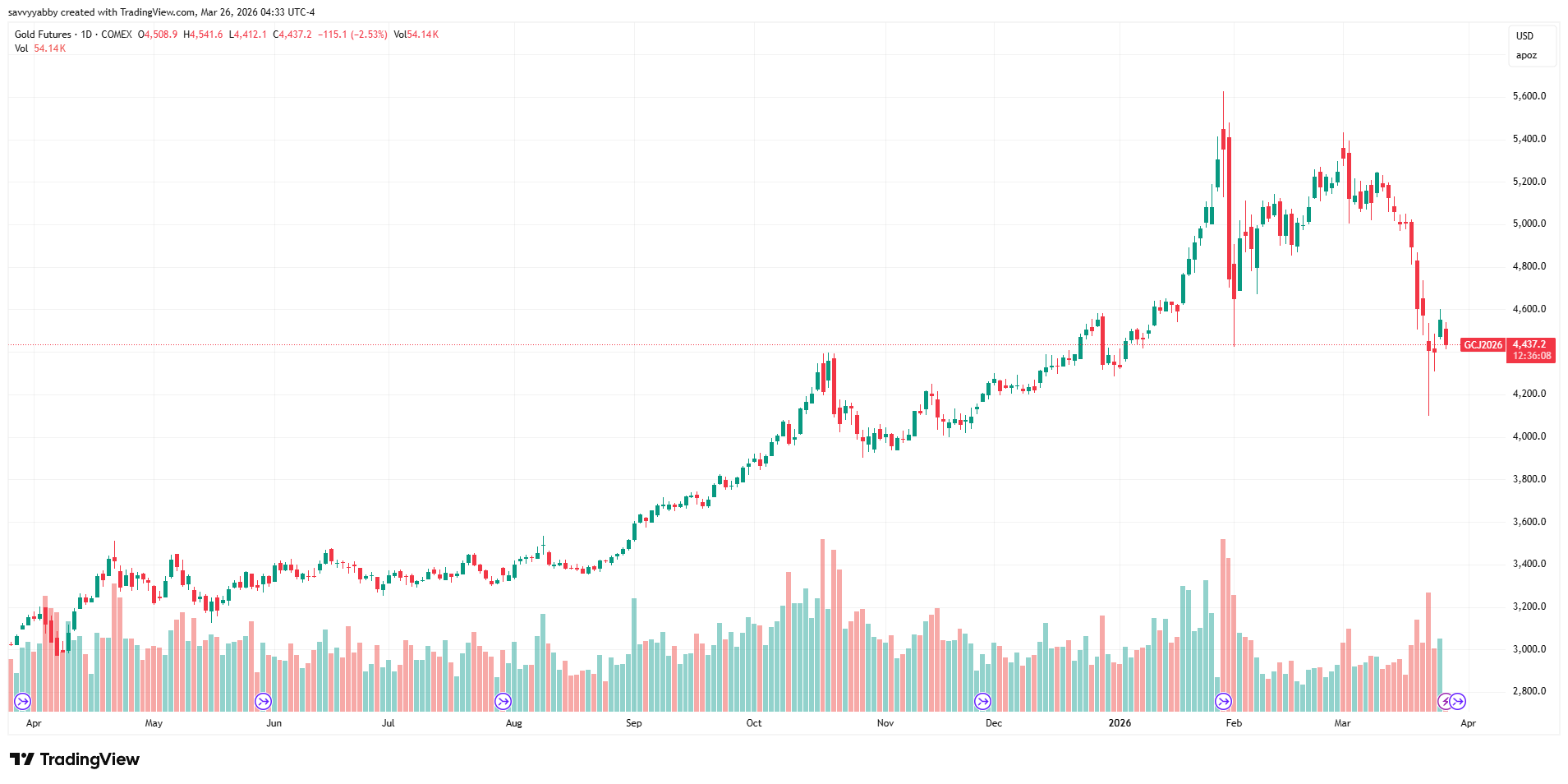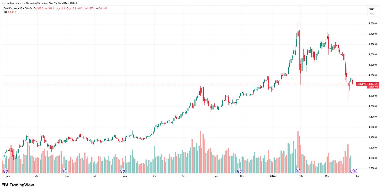 Look at gold, via COMEX futures. It is up 1.97% year to date but has swung like crazy.
